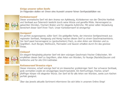 und Senfsaat aus Österreich besticht durch seine Würze und gereifte Milde. Hervorragend zu