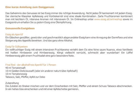 Der steirische Klassiker Apfelessig und Kürbiskernöl sind eine ideale Kombination. Zarte Fruchtaromen kombiniert