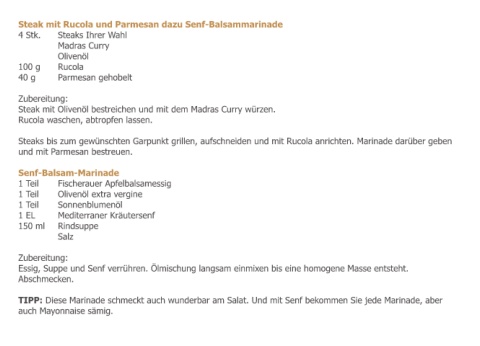 Steak mit Rucola und Parmesan dazu Senf-Balsammarinade