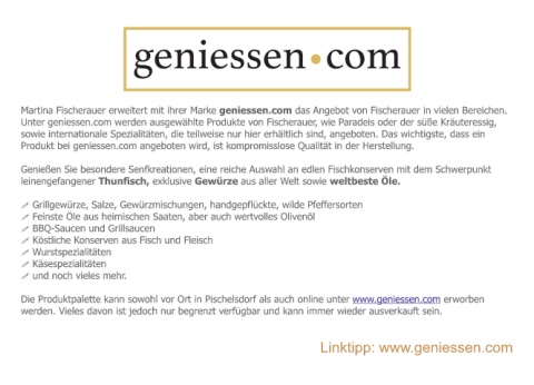 Martina Fischerauer erweitert mit ihrer Marke geniessen.com das Angebot von Fischerauer in vielen Bereichen.